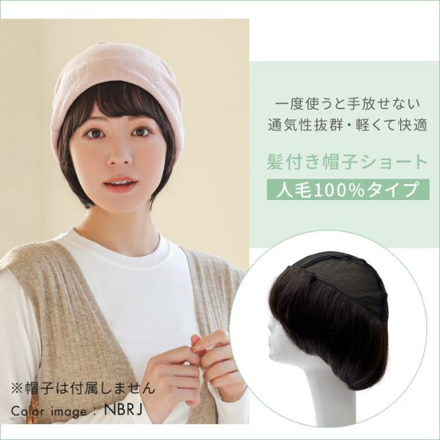 商品名:アクアドール 前髪取り外し式髪付き帽子ショート人毛100%
