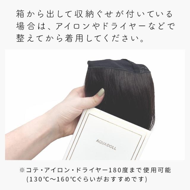ファイバー製商品よりもクセが付きやすいという人毛100%商品の特性上、納品時に収納癖がついている場合があります。