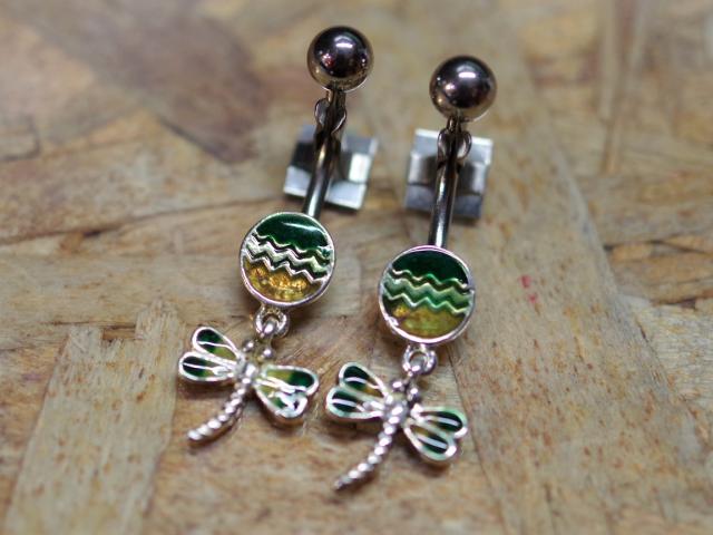 【送料無料】 ボディピアス とんぼデザイン 蜻蛉 ヘソピアス 耳たぶにも サージカルステンレス シルバー925 バナナバーベル 14G 14ゲージ レディース 【売り切り特価】
