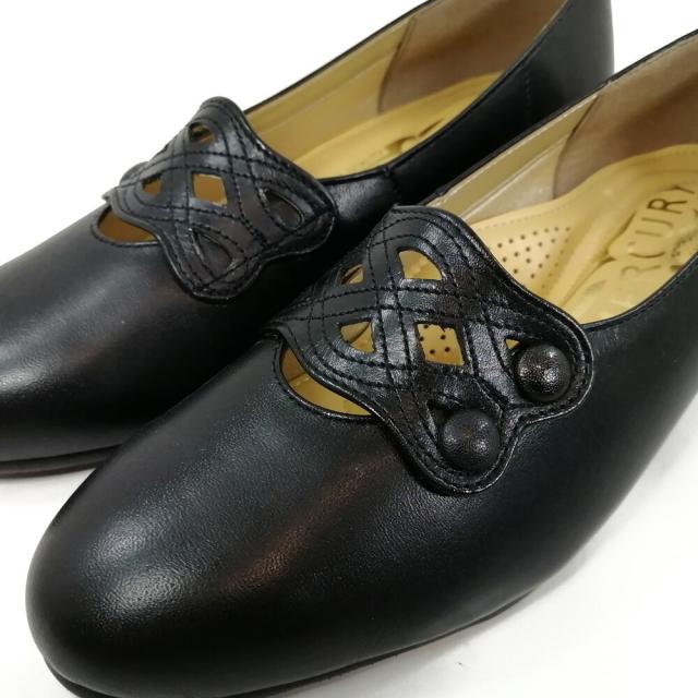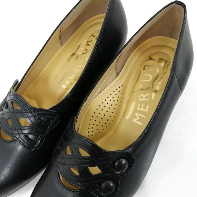 | 商品の特徴 | MERCURY(マーキュリー)の黒パンプスです。 ふんわりと足当たりの良いインソールと安定感のあるヒールで歩きやすい商品です。 幅広4E設計でゆったりと履くことができます。 天然皮革のためシワ等が入っている場合がございますが、不良品ではございません。 ヒール:約3cm ![]() | |