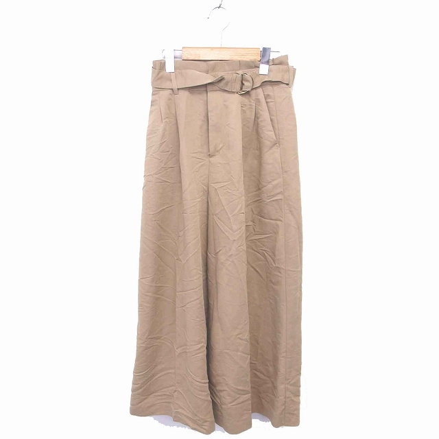 【中古】エージーバイアクアガール ワイド パンツ ハイウエスト ベルト 薄手 無地 シンプル M ベージュ 茶 /TT36