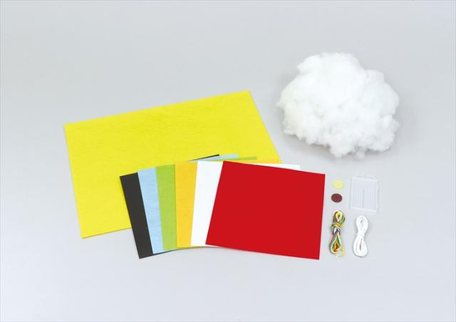 フェルト、綿、ひも、刺しゅう糸、刺しゅう針、ボタン、型紙