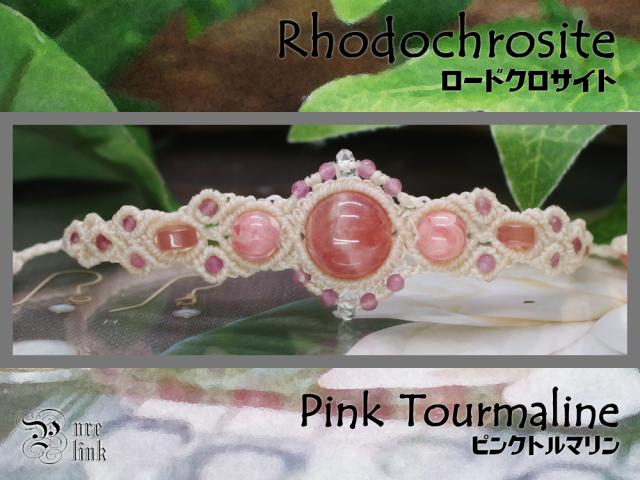 情熱の魔石『ロードクロサイト』と『ピンクトルマリン』マクラメ編ブレスレット2