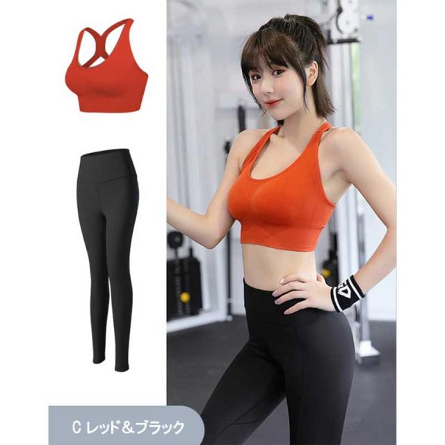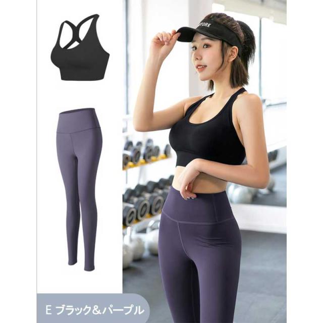 メール便送料無料 ヨガウェア 上下セット 2点セット カップ付き スポーツブラ レディース セットアップ 2点セット レギンス フィットネスウェア ピラティス スポーツウェア 大きいサイズ ウォーキング ジョギング ジム エクササイズ エアロビクス 吸水 速乾 通気性 上下