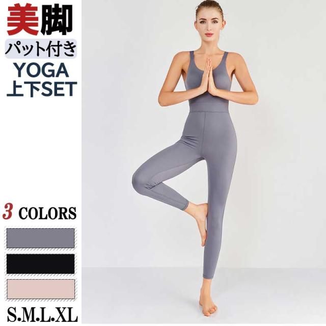 メール便送料無料 ヨガウェア ダンス衣装 オールインワン ホットヨガ スポーツブラ カップ付き ストレッチ素材 ノースリーブ 大きいサイズ ダンス ヨガセット ホットヨガ 無地 S M L XL 伸縮性 吸汗速乾