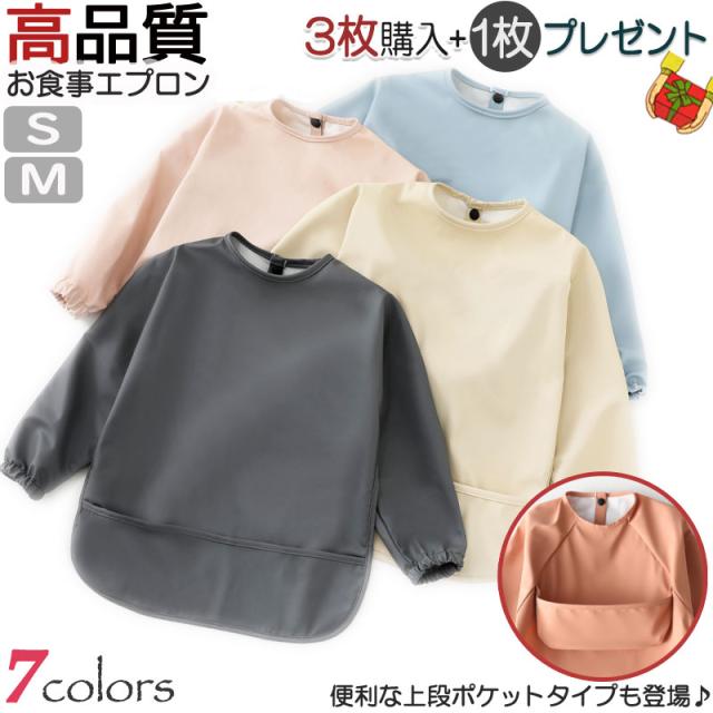 【3枚購入+1枚プレゼント 】送料無料 お食事エプロン 長袖タイプ ポケット付き 高品質 使い心地よい 柔らかい 長袖 食べこぼしガード 長袖タイプ 防水食事用エプロン お食事エプロン 長袖 6〜48ヶ月 エプロン スタイ 防水 洗濯可 よだれかけ 赤ちゃん