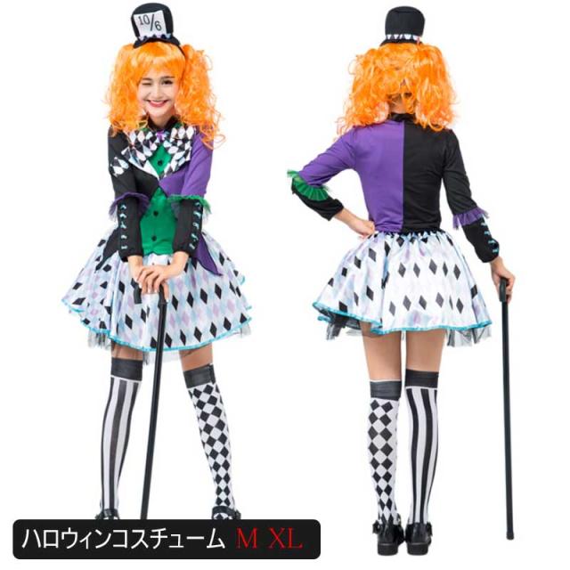 メール便送料無料 Halloween コスプレ ハロウィン コスプレ ピエロ魔女 ピエロ サーカス レディース コスチューム 手品師 魔法師 衣装