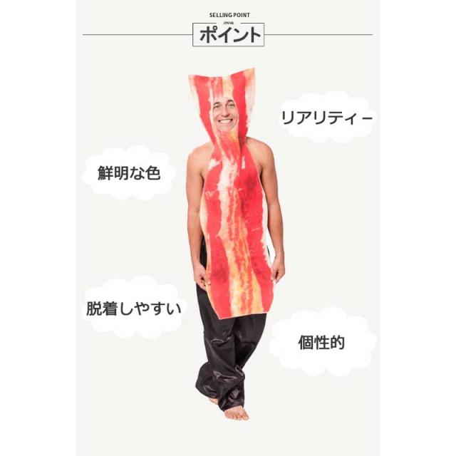 ハロウィン ベーコン コスチューム 食物 ハム 肉 男性用 コスプレ ハロウィン コスチューム 衣装 男性 メンズ グッズ 衣装 面白い 楽しい 舞台 イベント 仮装 大きいサイズ