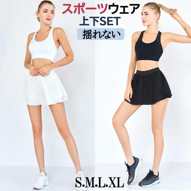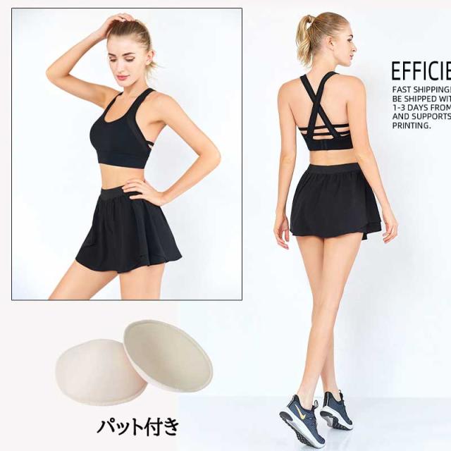 メール便送料無料 スポーツウェア テニス ウェア 上下セット 2点セット スポーツブラ トップス ボトムス カップ付き おしゃれ ヨガウェア セット ホットヨガ セットアップ ランニング ジョギングジム スポーツジム ウェア 上下セット 吸汗速乾
