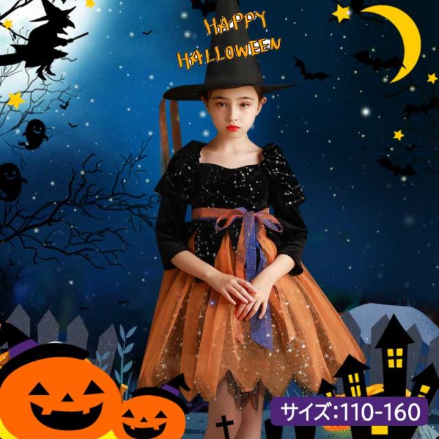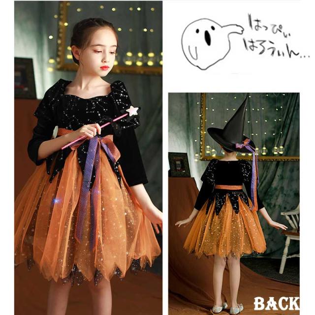 送料無料 ハロウィン 衣装 ハロウィン 子供 ドレス ハロウィン 魔女 小魔女 コスプレ衣装 魔法使い コスチューム ハロウィン仮装 魔法師 キッズ ハロウィン キッズ衣装 魔法棒付き