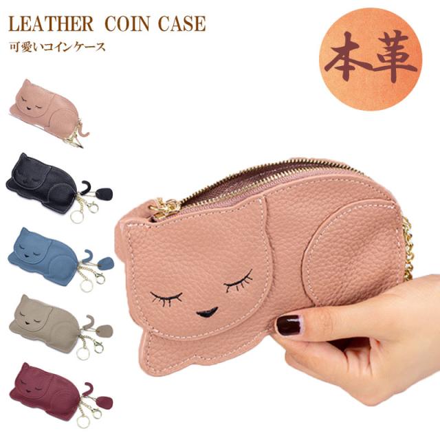 送料無料 小銭入れ コインケース レディース 小銭入れ 財布 猫 ネコ 動物 アニマル 可愛い 本革 財布 革財布 レザー コンパクト 財布 ギフト プレゼント コンパクト ミニウォレット 女の子