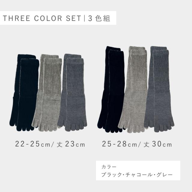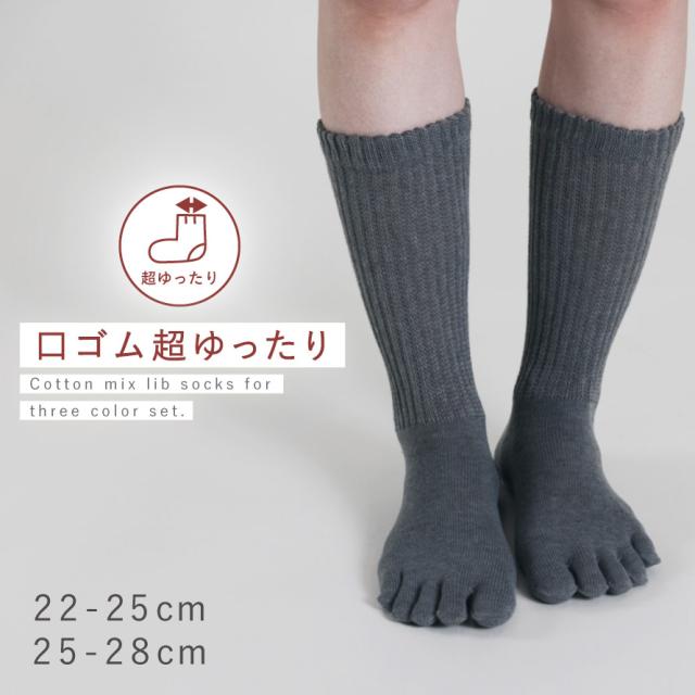 履き口 ゆったり 5本指ソックス レディース メンズ 靴下 【3色セット】 22-25cm 25-28cm 五本指靴下 締め付けない【 締め付けが苦手な人にも優しい履き心地 】 口ゴムゆったり 丈長 厚手 秋冬 蒸れにくい むくみ対策 ゆったりフィット丈長5本指ソックス シニア 高齢者