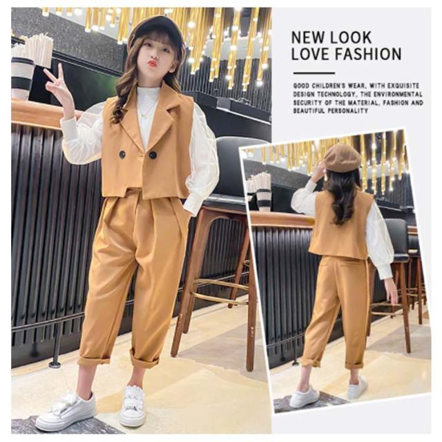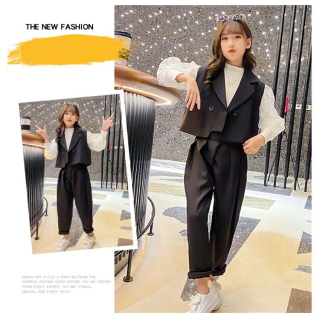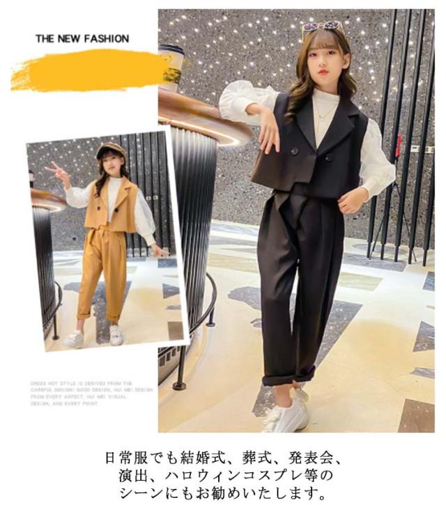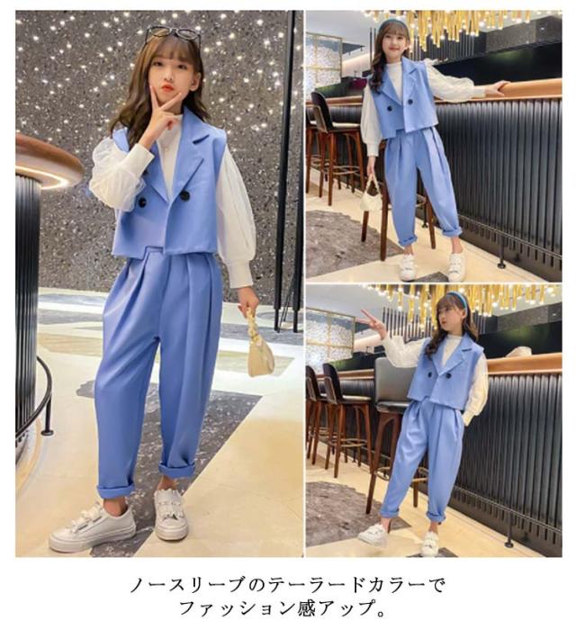| 春秋にぴったりの女の子3点セット。 テーラードジャケットと長袖ブラウスとロングパンツのセットアップでコーデネート困りありません。 ノースリーブのテーラードカラーでファッション感アップ。 すこし大きめのダブルボタンもワンポイント。 ブラウスの袖部分はふんわりとした2重構造でひらひろと可愛い。 品質のある生地を厳選して、柔らかくて肌触りも優しくて快適です。 セットそのままではもちろん、単品別々でも使える。 日常服でも結婚式、葬式、発表会、演出、ハロウィンコスプレ等のシーンにもお勧めいたします。 | |