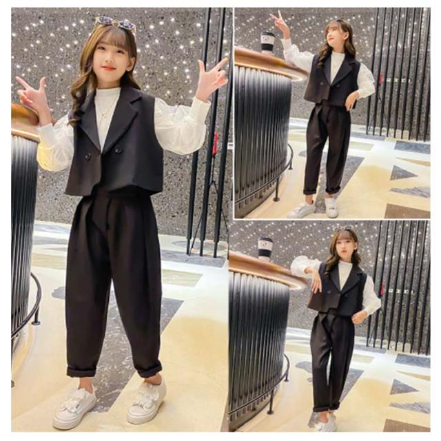 3点セット スーツ パンツスーツ 女の子 120 130 140 150 160 170 入学式 卒業式 キッズ 子供 スーツ フォーマル スーツ 小学校 高校生 卒業式 子供スーツ セットアップ ショートジャケット 長ズボン 長袖ブラウス 七五三 発表会 結婚式 葬式 ブラック 送料無料