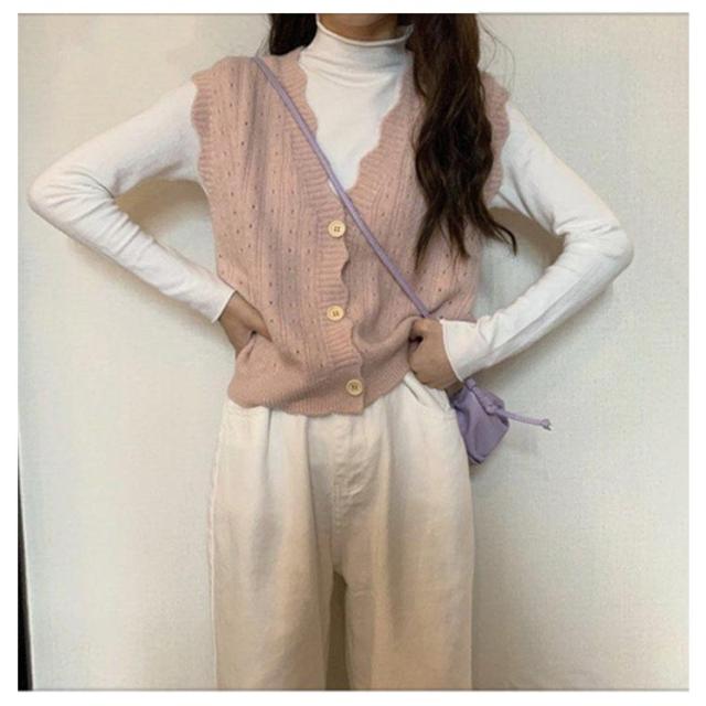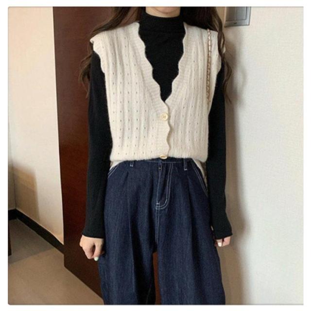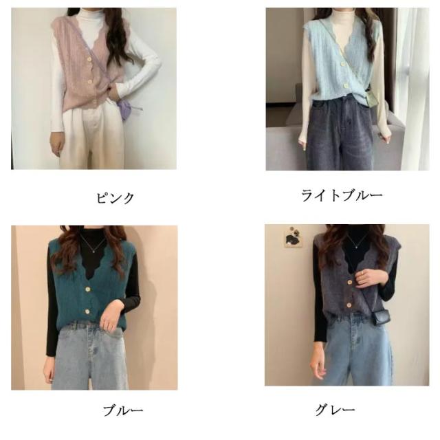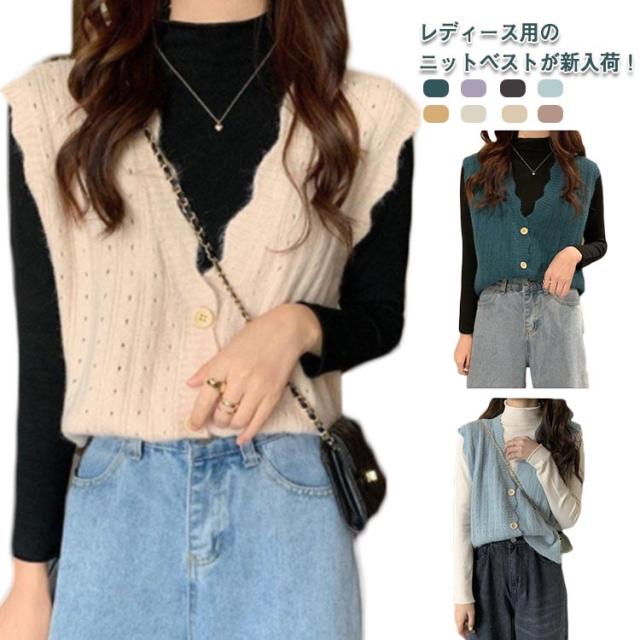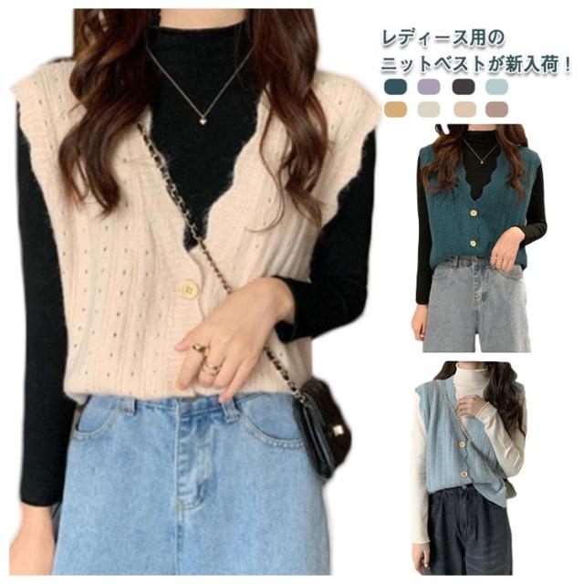 前開き ニット ベスト レディース ニットベスト ノースリーブ Vネック トップス レイヤード 無地 OL 秋服 重ね着 女子高生 ゆったり 女性用 春 秋 ボタン付き オシャレ 薄手 可愛い 通勤 カジュアル