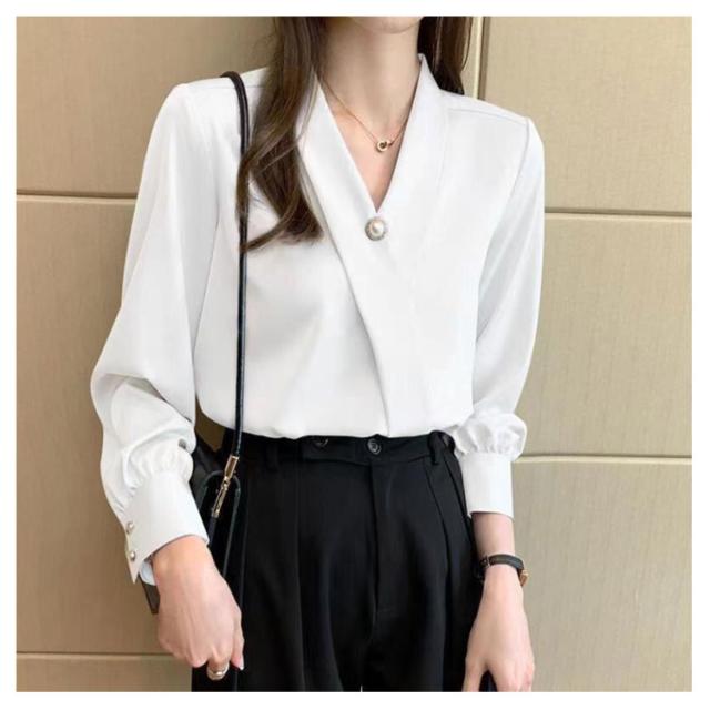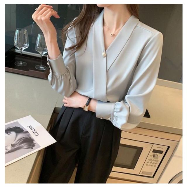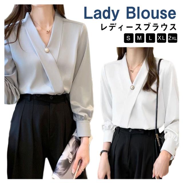 Vネック ブラウス シルク風 レディース カシュクール風 ブラウス 長袖 ブラウス シャツ シルク風 ブラウス 長袖ブラウス 長袖シャツ サテン ブラウス 通勤 フォーマル フリル ブラウス トップス フェミニン 送料無料