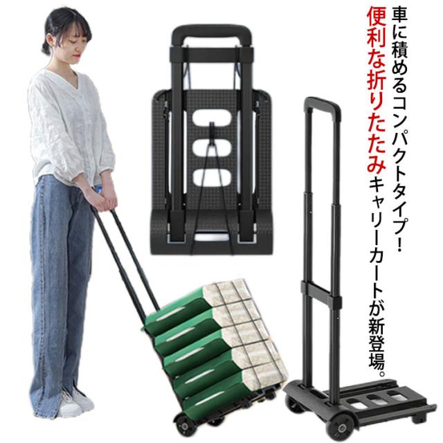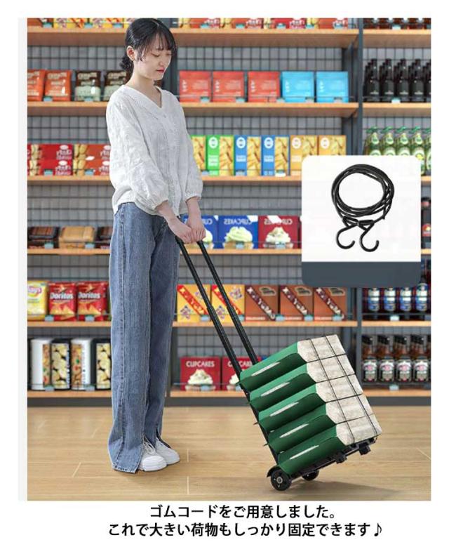 折りたたみ式 キャリーカート コンパクト 軽量 台車 ハンドキャリー キャリングカート 折りたたみカート キャスター付き ゴムひも 買い物 ショッピング アウトドア キャンプ 荷物運び 防災 ゴミ捨て キャリー カート