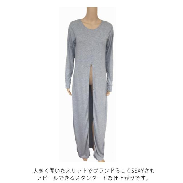 tシャツロングワンピース スリット ワンピース ロング丈 長袖 tシャツ ロングワンピース tシャツワンピ ロングワンピース 体型カバー ナチュラル 無地 シンプル おしゃれ