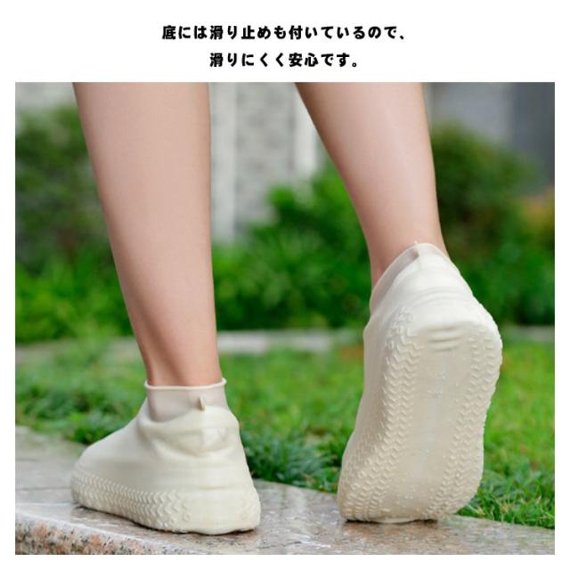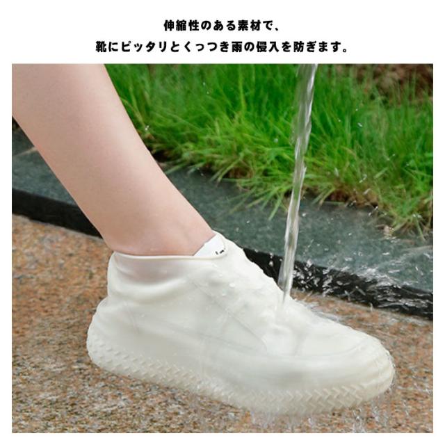 | 29cmまで、雨の日に靴の上からそのまま履けるレインシューズカバー! 伸縮性のある素材で、靴にピッタリとくっつき雨の侵入を防ぎます。 底には滑り止めも付いているので、滑りにくく安心です。 軽量、耐摩耗性の素材なので丈夫で長持ちします。 折りたたんでも変形しないので持ち運びにも便利です。 | |