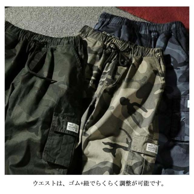 | 普段着にもオシャレなカーゴパンツは、ワークパンツにも最適です。 ウエストは、ゴム+紐でらくらく調整が可能です。 ポケットは、カーゴポケットを6個配置し、収納性のある機能面を充実。 大人気のスポーツ・スニーカーファッションをベースにした、サイドのカーゴポケットデザイン等、スタイリッシュでスマートなデザインにモディファイ。 | |