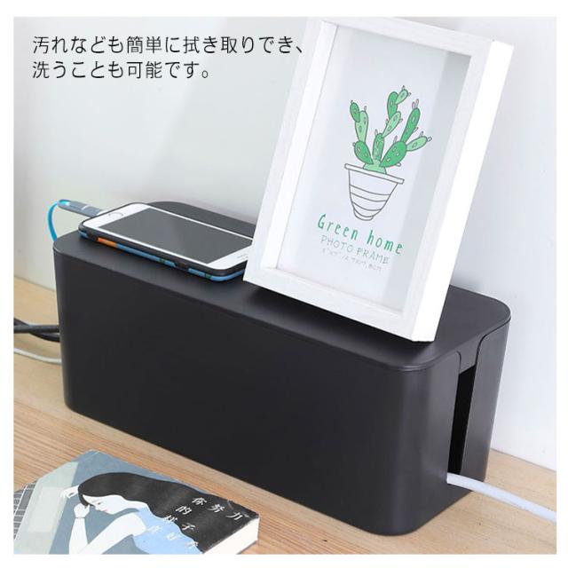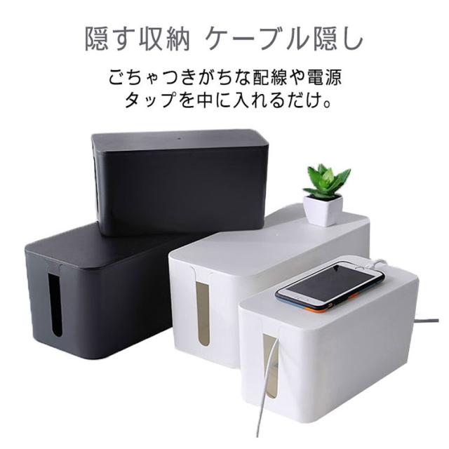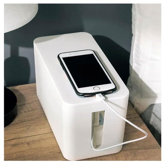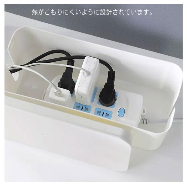 | ごちゃつきがちな配線や電源タップを中に入れるだけ。 汚れなども簡単に拭き取りでき、洗うことも可能です。 電源周りを埃から守ったり、お子様やペットのイタズラ対策など、安全面からもおすすめです。 インテリアの雰囲気を損なわないシンプルでスタイリッシュデザインです。 熱がこもりにくいように設計されています。 蓋の上に小物を置くこともできます。 | |
