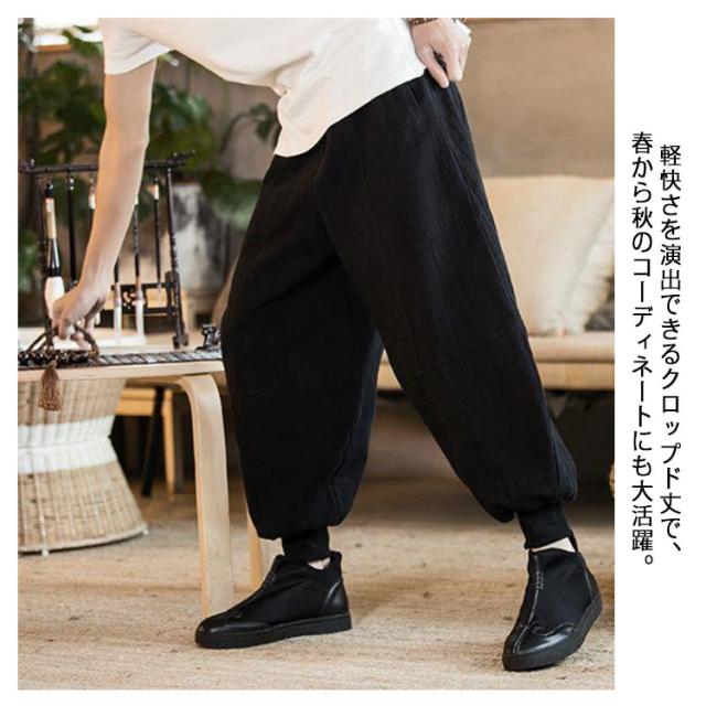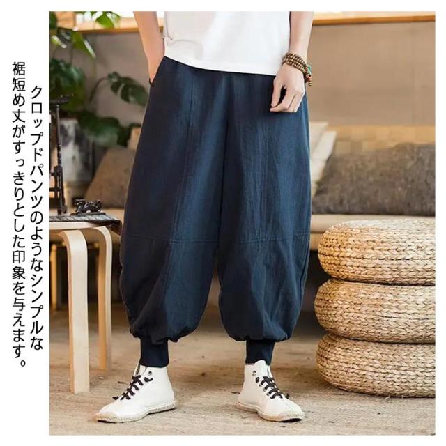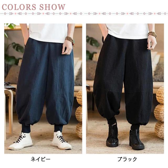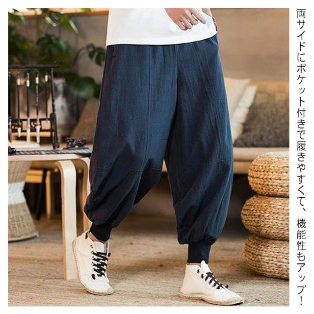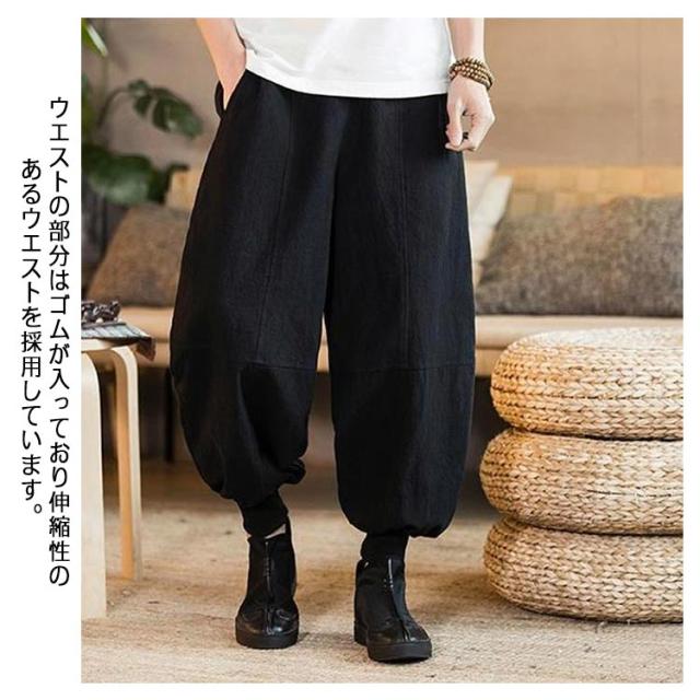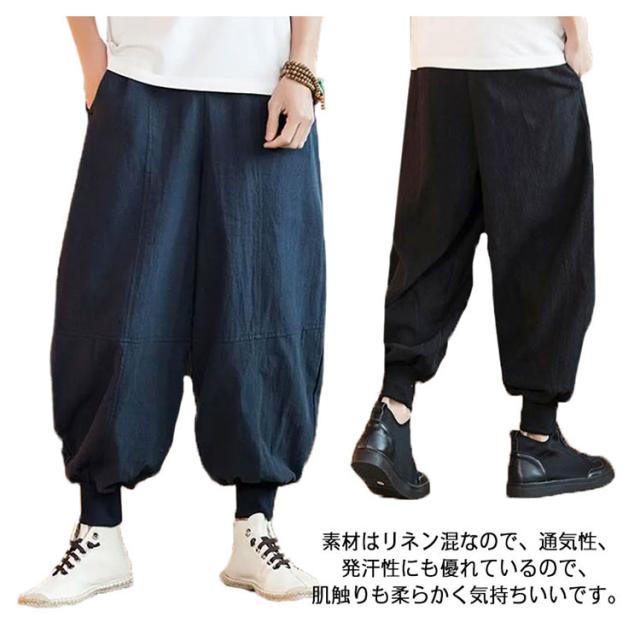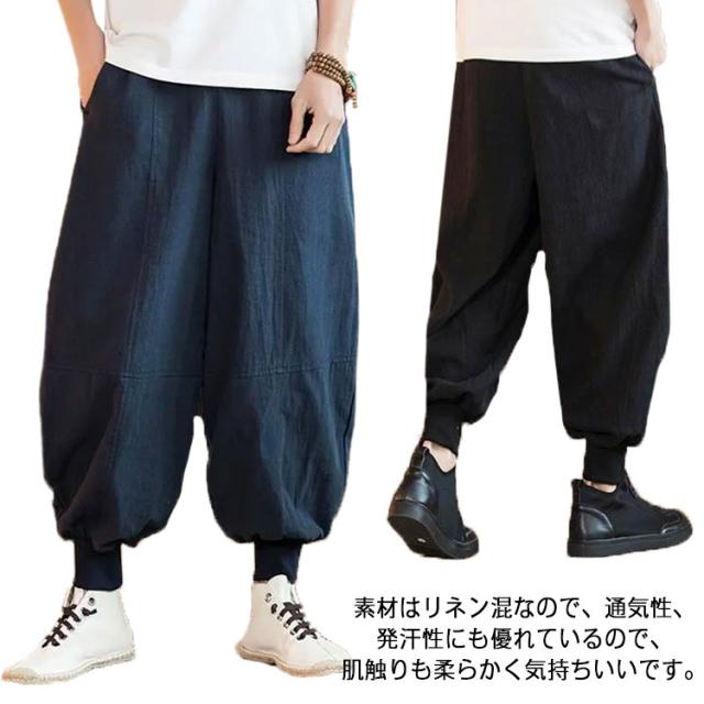 リネンパンツ サルエルパンツ バギーパンツ メンズ 大きいサイズ 麻 ワイドパンツ 九分丈 ゆったり ハロンパンツ アラジンパンツ 袴パンツ 無地 ガウチョパンツ カジュアル ズボン ポケット ボトムス リラックス 春 秋 夏 送料無料