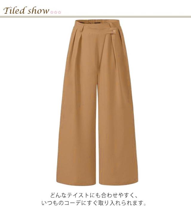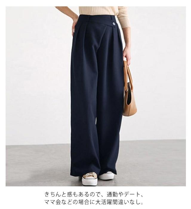 ワイドパンツ アシンメトリー ボトムス 長ズボン レディース 春秋 オフィス コーデ 通勤 仕事 ビジネス タック入り スラックス キレイメ ハイウエスト 足長効果 ゆったり フェミニン お洒落 送料無料