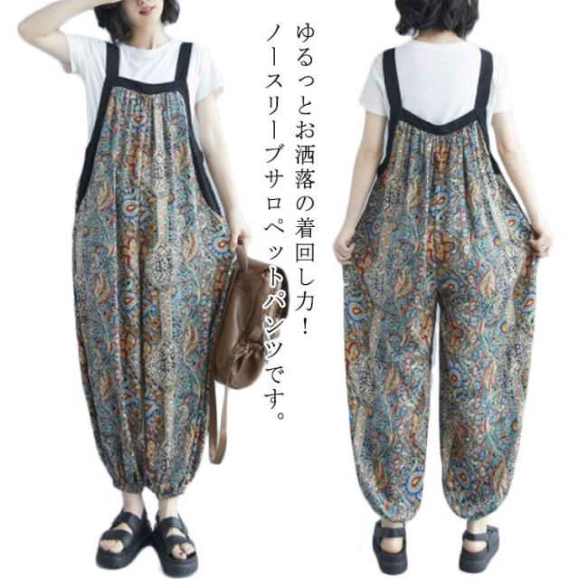 エスニック サロペット パンツ サルエルパンツ 大人 バルーンパンツ アラジンパンツ ワイドパンツ ガウチョパンツ オーバーオール オールインワン きれいめ 春 夏 秋 ボトムス 大きいサイズ L XL 2XL 3XL 4XL 5XL
