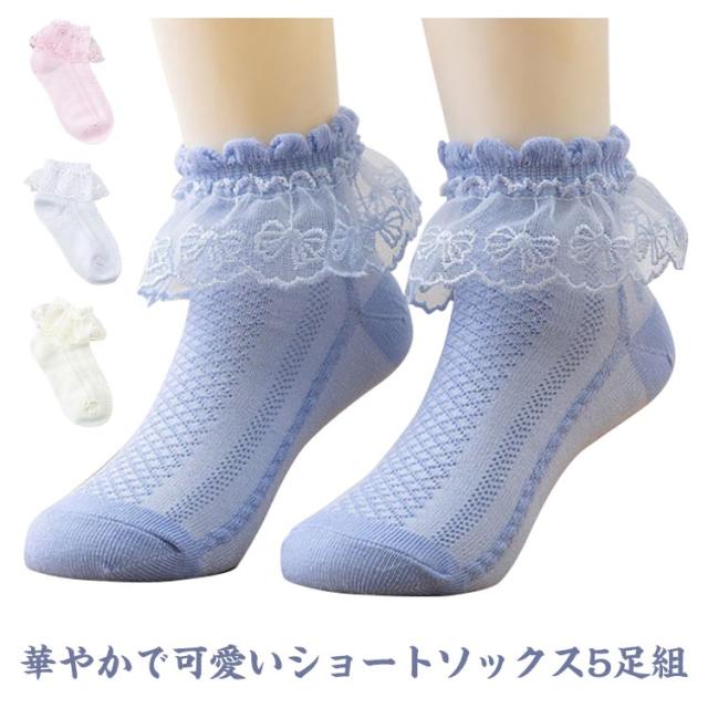 キッズ 女の子 靴下 5足組 フリルソックス レース 全5色 子供服 フォーマル 入学式 入園式 発表会 結婚式 ショートソックス クルーソックス 白 卒業式 卒園式 ジュニア おしゃれ かわいい ベビー 七五三 秋冬 送料無料