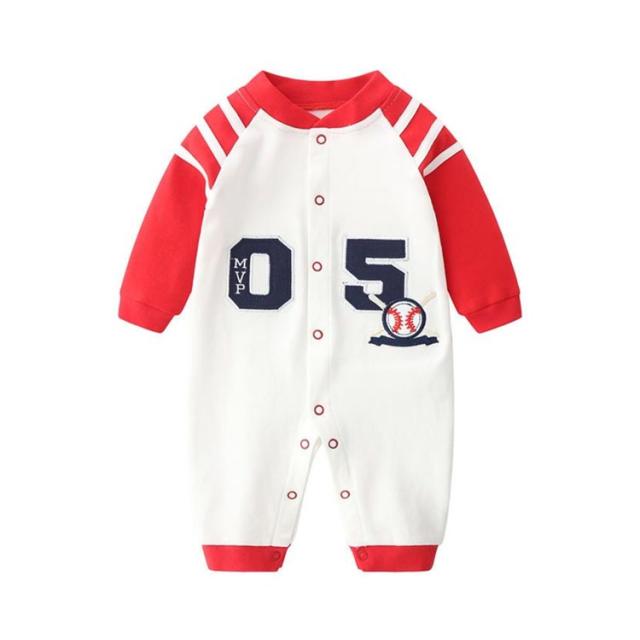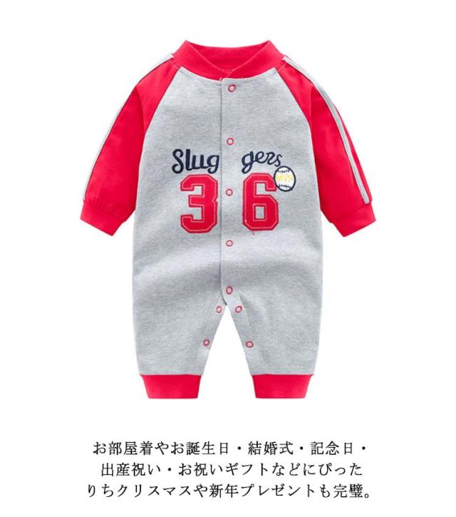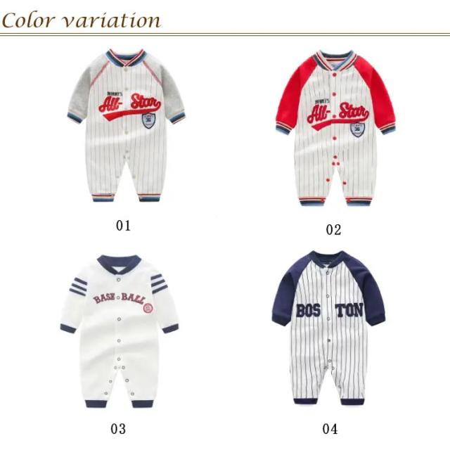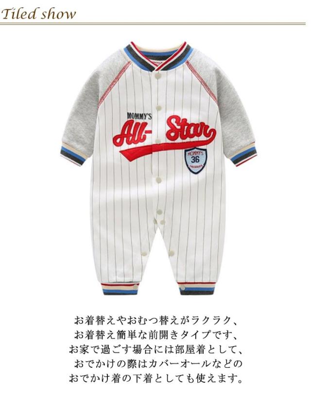 赤ちゃん カバーオール ロンパース ベビー服 新生児服 つなぎ 長袖 前開き 綿 男の子 かわいい コスチューム ベビー用 股下スナップボタン コスプレ 野球柄 おしゃれ 出産祝い プレゼント ギフト