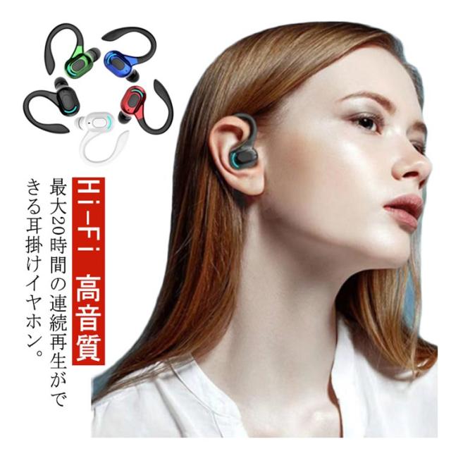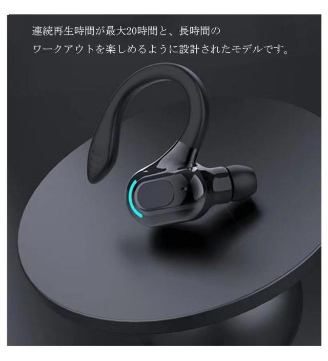 イヤホン ワイヤレスイヤホン 耳掛け ブルートゥース イヤホン 片耳 20時間再生 bluetooth Hi-Fi 高音質 マイク内蔵 防水 スポーツイヤホン 自動接続 自動ペアリング Phone/Android適用 在宅勤務 ジム スポーツ 運転 送料無料