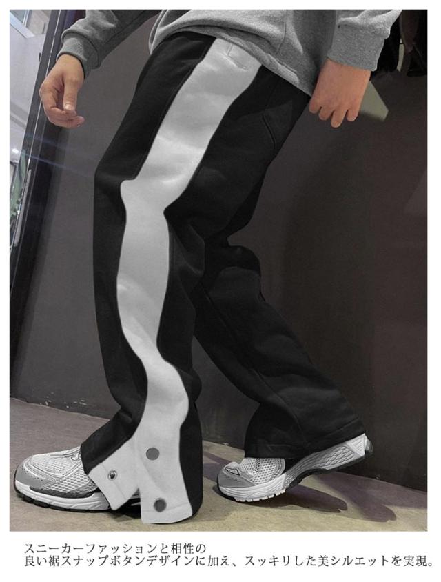 | ファッションなディテールを取り入れたスウェットパンツ。 サイド配色ラインがヴィンテージライクな「スポーツ」要素 、裾スナップボタンがスタイリングアップ。 柔らかで肌触りのよい生地、穿き心地も◎ スニーカーファッションと相性の良い裾スナップボタンデザインに加え、スッキリした美シルエットを実現。 トレーニングやランニングなどスポーツシーンはもちろん、ヒップホップなどダンスにもお勧め。 | |