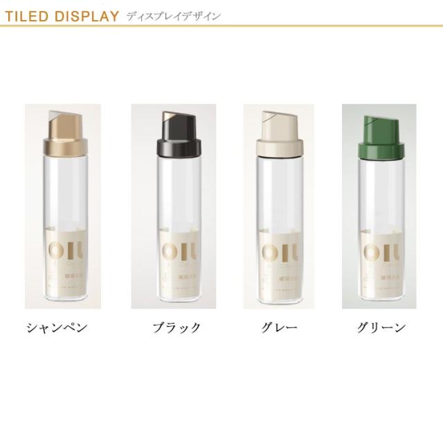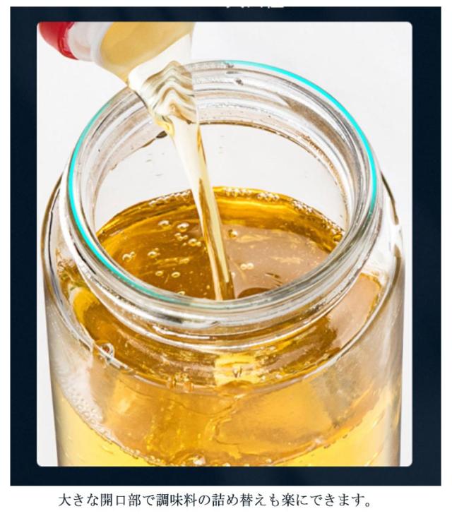 | 醤油・みりん・酒・酢・油などの液体調味料を入れ替えるボトルセット ボトルを傾けてフタが自動的に開けます、忙しい料理中でも大活躍。 パッキン付きなのでしっかりと密閉され、液漏れせず、調味料の風味も逃がしません。 容器の中身が透けて見えるので、残量が一目で分かるのも嬉しいポイント! 大きな開口部で調味料の詰め替えも楽にできます。 パーツは分解して洗えるので、お手入れが簡単で衛生的です♪ | |