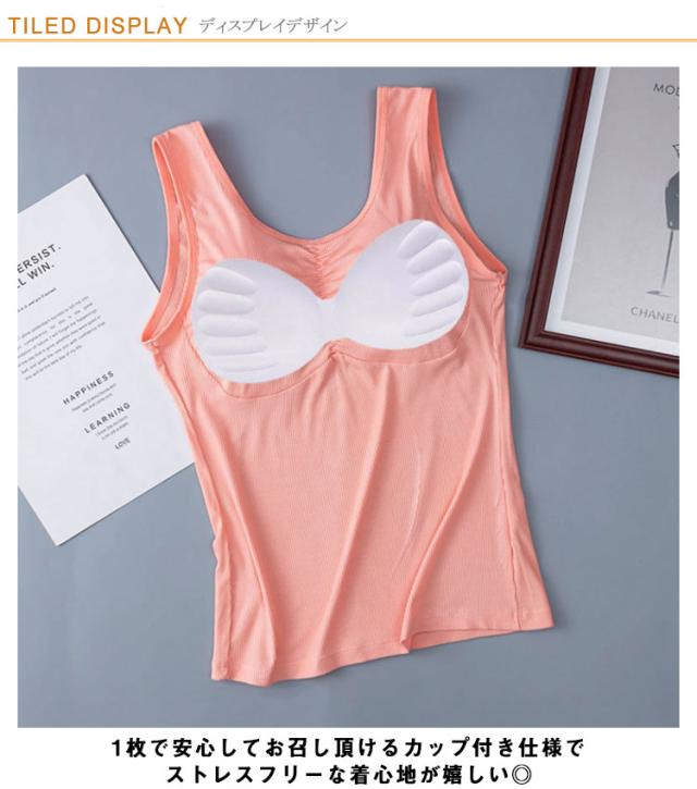 ノンワイヤー ブラスリップ ブラタンクトップ ソフトカップ付き リブ 吸汗速乾 レディース インナー おうちブラ 部屋着 ルームウェア ストレンチ 体型カバー 大きいサイズ 高齢者 シニア 敬老の日【送料無料】