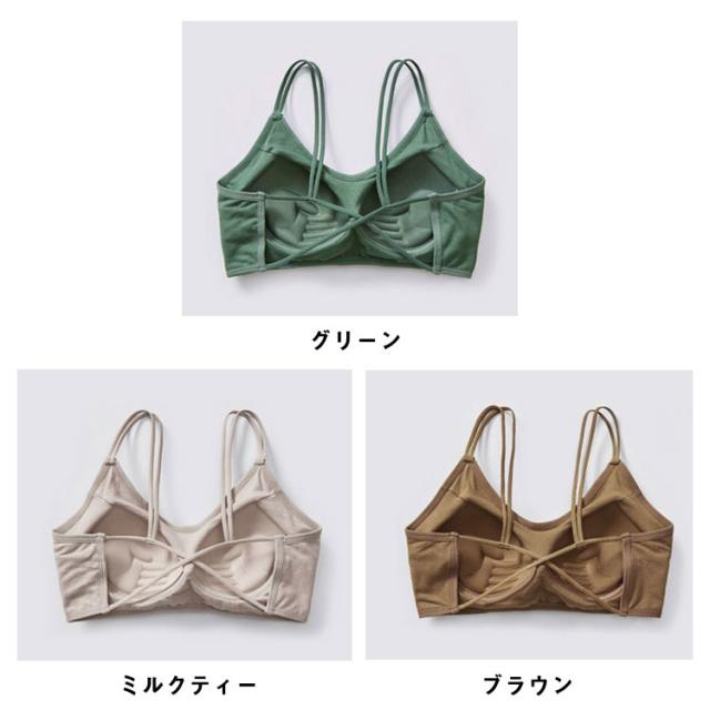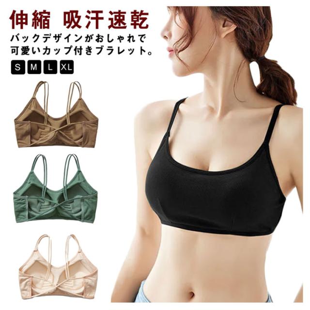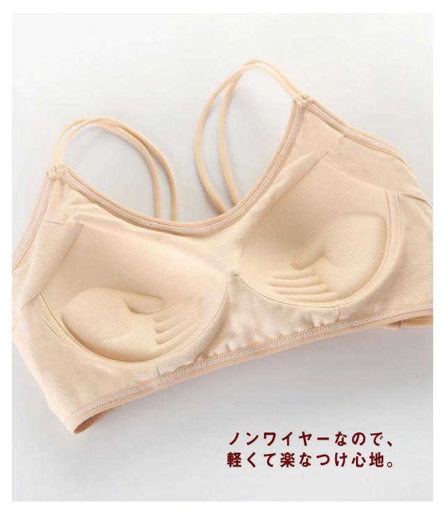 | バックデザインがおしゃれで可愛いカップ付きブラレット。 ノンワイヤーなので、軽くて楽なつけ心地。 カップの肌側には、吸汗速乾性のよいやわらかな綿素材を使用し、さらっとソフトな肌あたりに。 背中部分を大きく開いたデザインでファッション性も高く!見た目にもこだわった一枚です。 トップスの上に重ねて着用したり「肌見せブラ」として普段のコーディネートにも使えます! | |