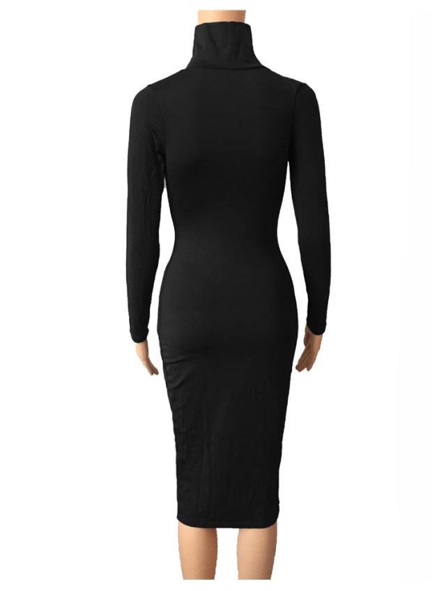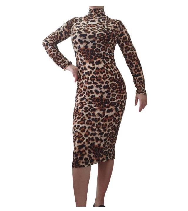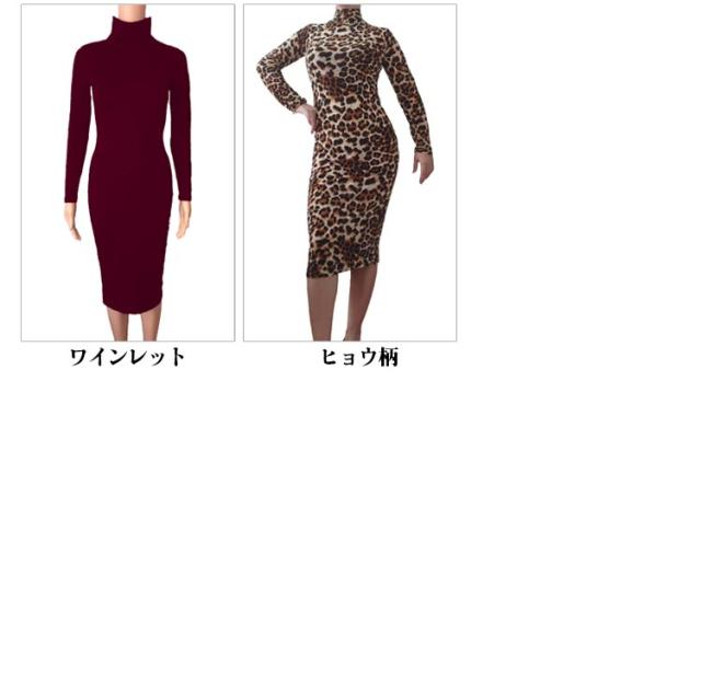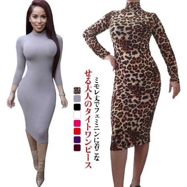 ワンピース 長袖 タイトワンピース ロングワンピ ロングワンピース ハイネック ミモレ丈 ワンピ スリム シンプル 柄 ヒョウ柄 フェミニン Tシャツワンピ フィット 春 夏 秋 冬 20代 30代 40代