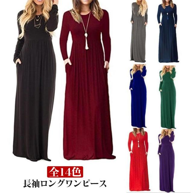 全14色 ワンピース レディース マキシワンピース 長袖 春 夏 春夏 長袖 tシャツワンピース マキシ丈ワンピース ロング丈ワンピース リゾート 大人 20代 30代 40代 OL ママ 母