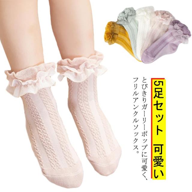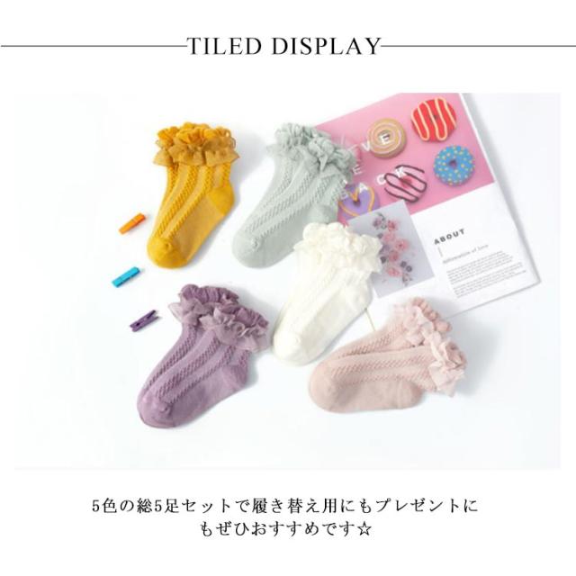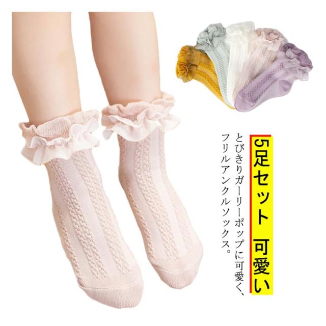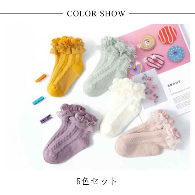 5足セット 靴下 キッズ ソックス ベビー靴下 女の子 入学式 子供 フリル アンクルソックス フォーマル レースソックス ショートソックス お受験 卒業式 卒園式 入園式 シンプル 可愛い お洒落 ホワイト 白 グリーン イエロー パープル ピンク ジュニア 無地 韓国風 送料無料