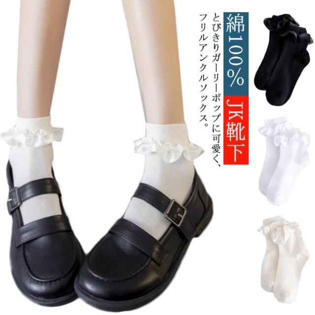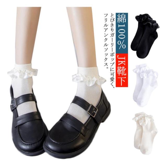 綿100% JK靴下 3足セット ソックス レディース靴下 女の子 入学式 フリル アンクルソックス フォーマル レースソックス ショートソックス お受験 卒業式 シンプル 可愛い お洒落 ホワイト 白 ベージュ ブラック 黒 ジュニア 無地 韓国風 可愛い 無地 送料無料
