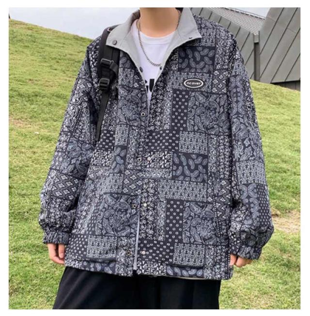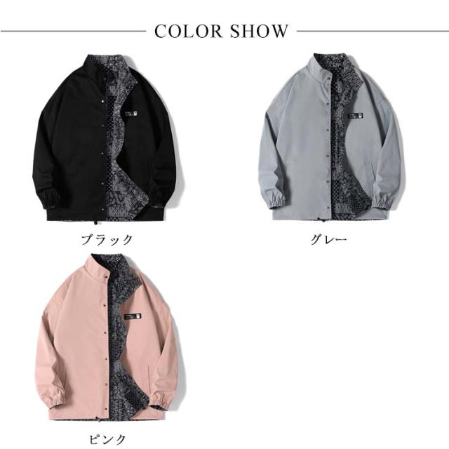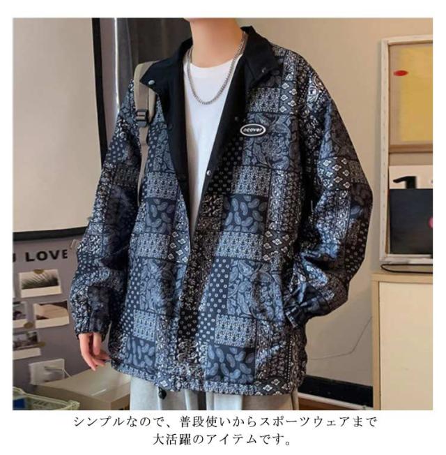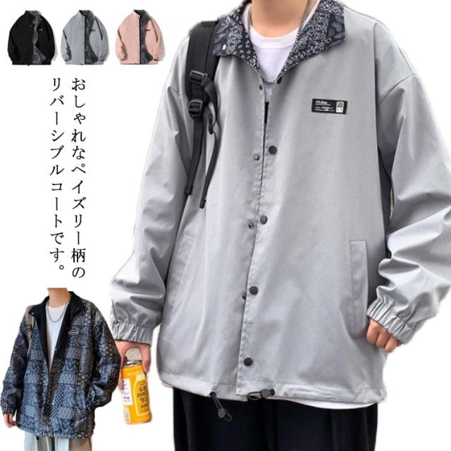 リバーシブルコート メンズ ジャケット ペイズリー柄 マウンテンパーカー リバーシブル ブルゾン ジップアップ バンダナ アウター 春 秋 M L XL 2XL 3XL