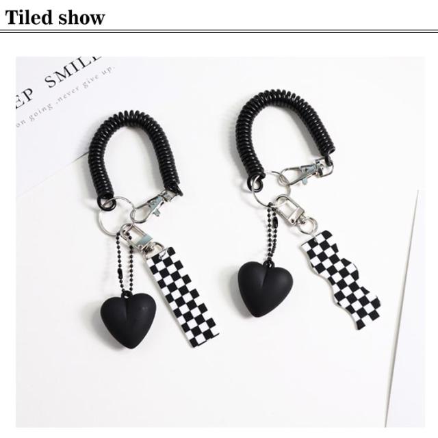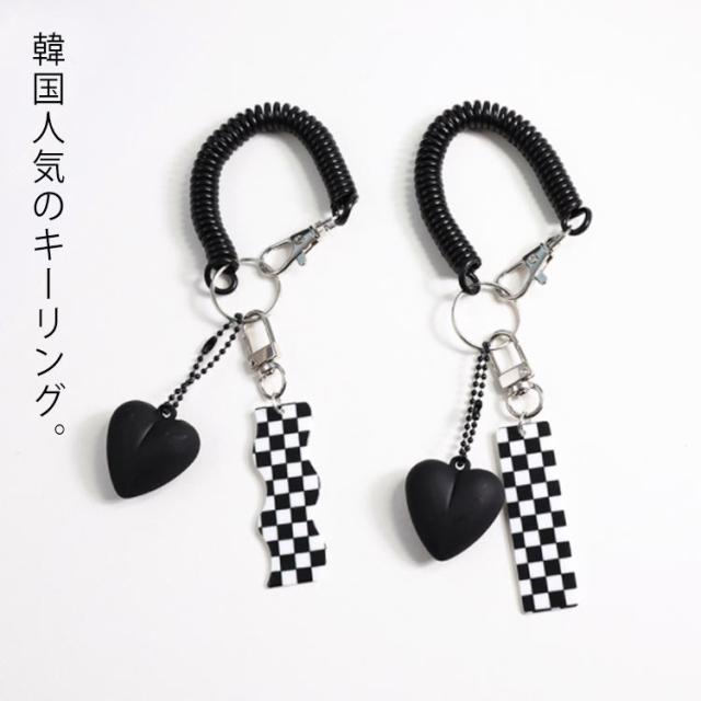 【送料無料】 キーリング キーホルダー アクリルキーホルダー スマートキー ホルダー 黒 白 チェック 韓国 韓流
