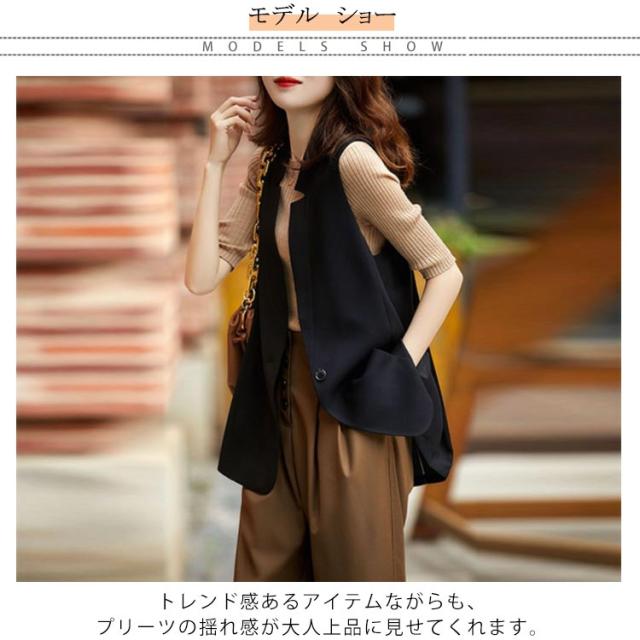 ジレ レディース ロングジレ ロングベスト 春 夏 秋 前開き ベスト 切り替え プリーツ テーラード ノースリーブ カーディガン スーツベスト 羽織 アウター シンプル 無地 フォーマル 大人 OL 通勤 オフィス きれいめ おしゃれ 体型カバー 母の日 ギフト プレゼント 送料無料