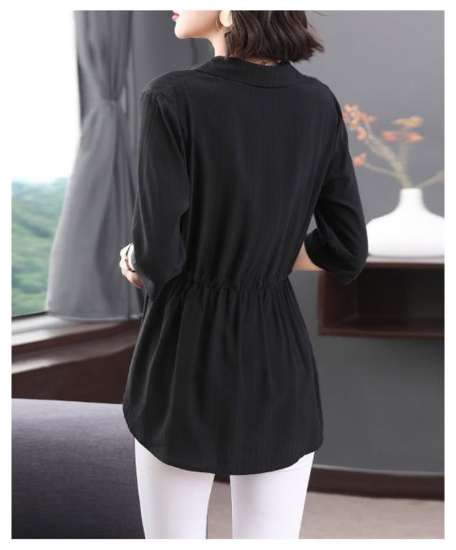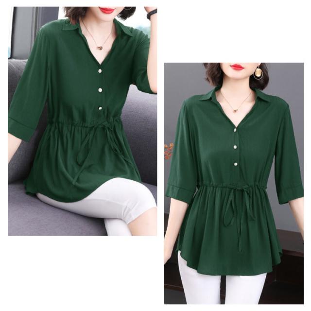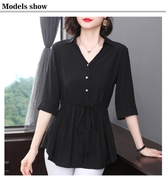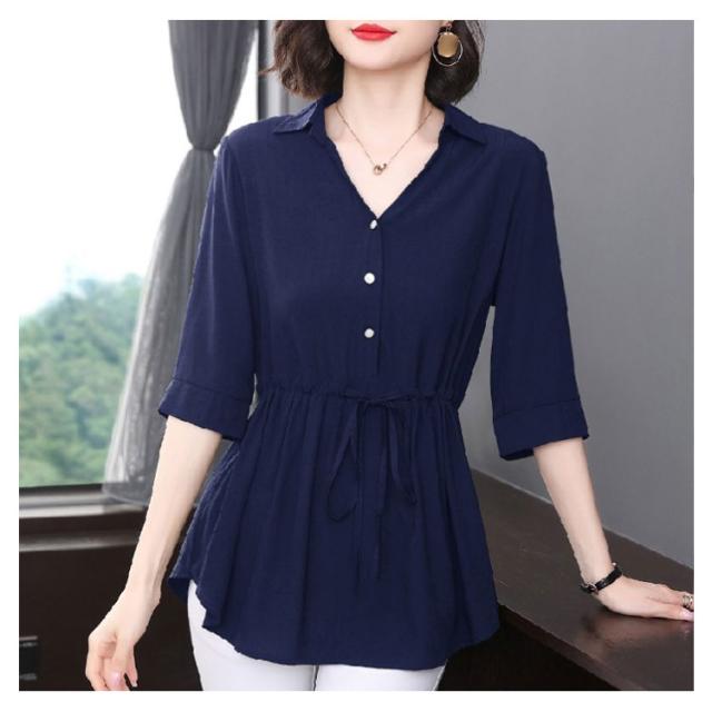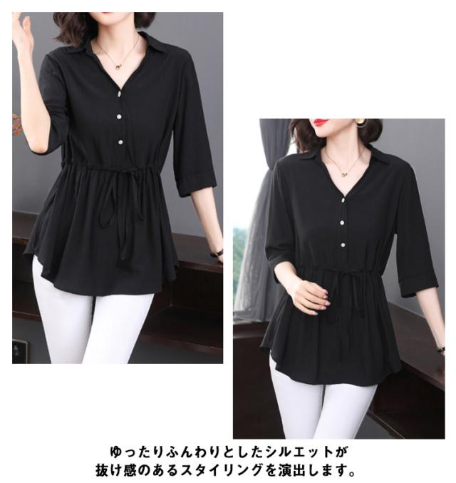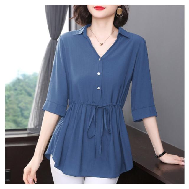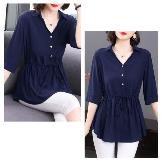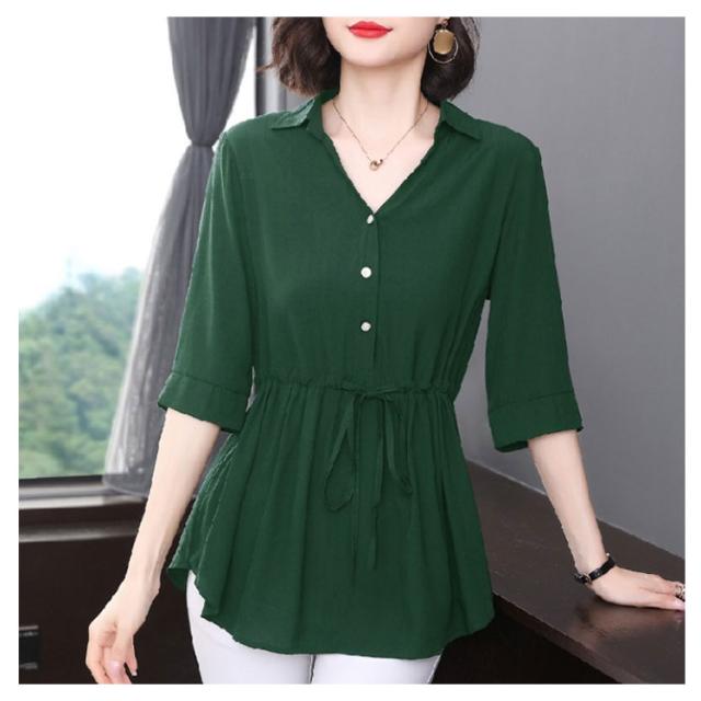 チュニックシャツ 五分袖 七分袖 ウエストマーク ウエストリボン 夏 春服 夏服 秋服 Vネック ゆったり チュニックシャツ 夏 トップス カジュアル シンプル 大きいサイズ M L XL 2XL 3XL 4XL 5XL