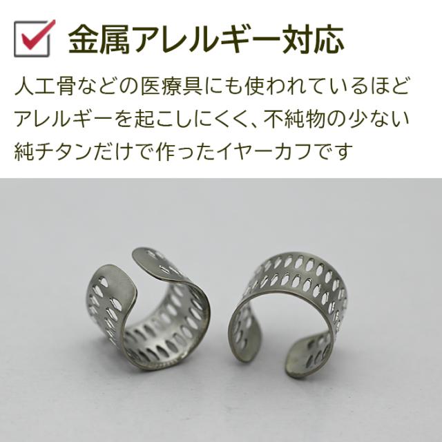 金属アレルギー対応 純チタン製 イヤーカフ イヤークリップ Dデザイン