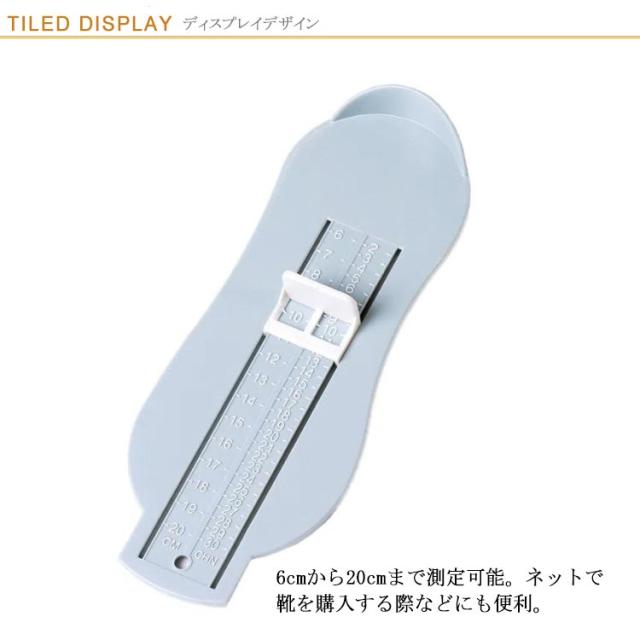 | 子どもの靴のサイズが測れます。子供用サイズ測定器 6cmから20cmまで測定可能。ネットで靴を購入する際などにも便利。 簡単にお子様の足のサイズが測定できます。 靴の購入に。お子様の成長の記録に。 お家で手軽に測定できるフットッメジャー | |