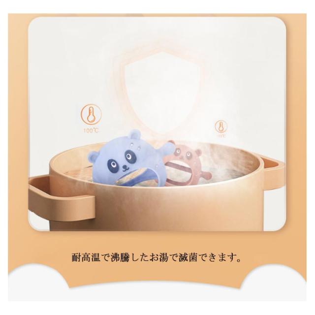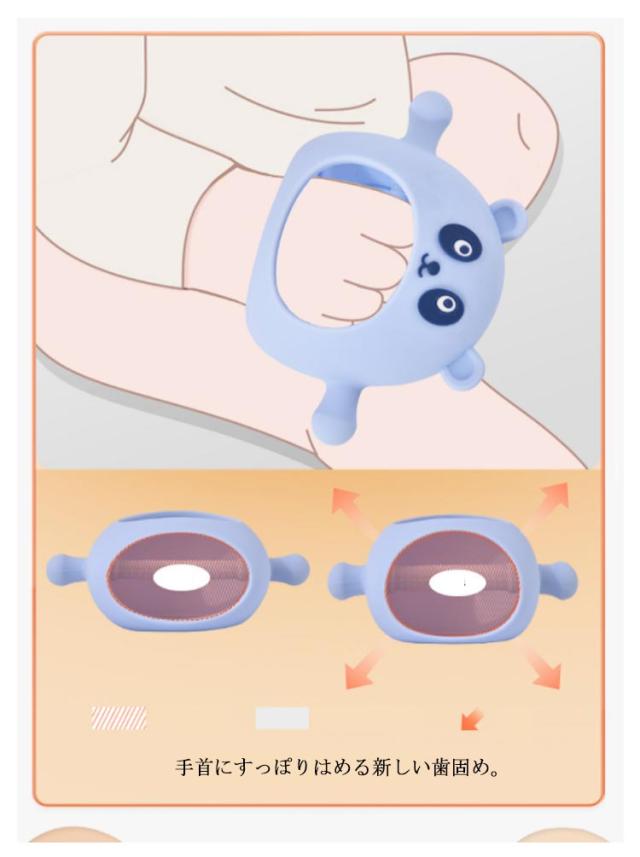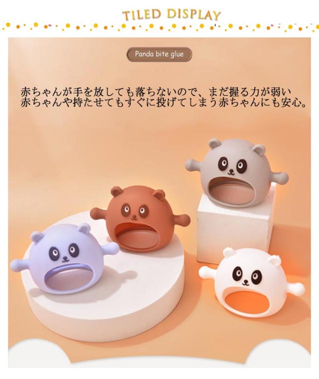 | 可愛いパンダ形歯固め。 手首にすっぽりはめる新しい歯固め。 赤ちゃんが手を放しても落ちないので、まだ握る力が弱い赤ちゃんや持たせてもすぐに投げてしまう赤ちゃんにも安心。 耐高温で沸騰したお湯で滅菌できます。 安全無毒、BPAフリーのシリコン素材を採用し、柔らかくて安心できる。 | |