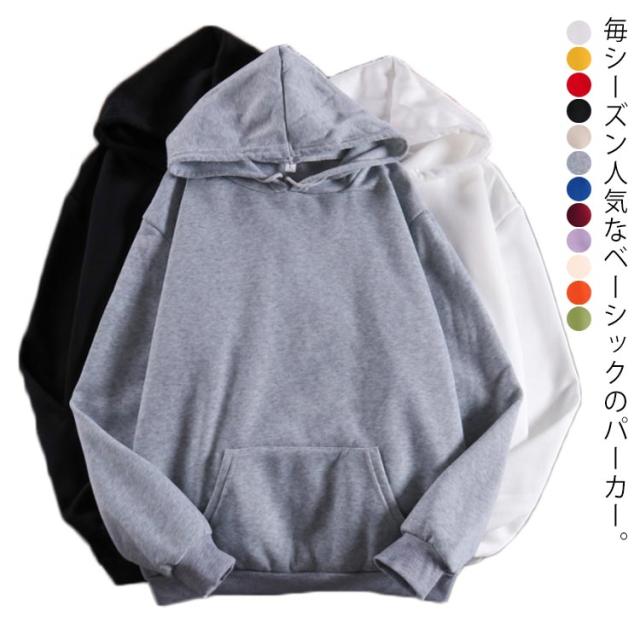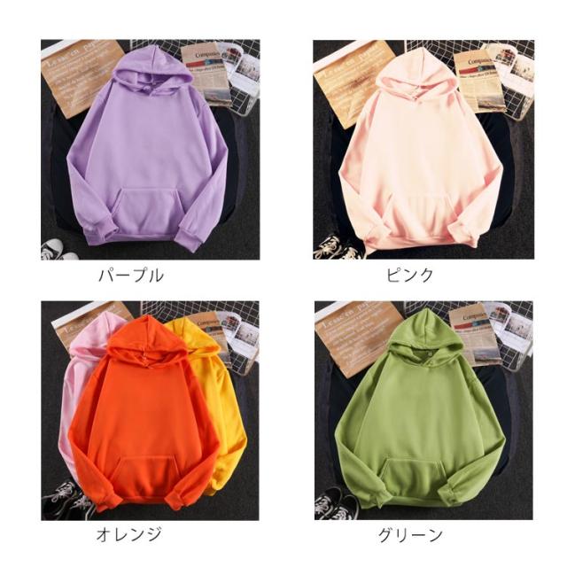 全12色×5サイズ パーカー レディース 無地 シンプル ゆったり 大きいサイズトップス 長袖 フード付き プルオーバーパーカー ホワイト イエロー レット ブラック ベージュ ブラック ブルー ワインレット パープル ピンク オレンジ グリーン