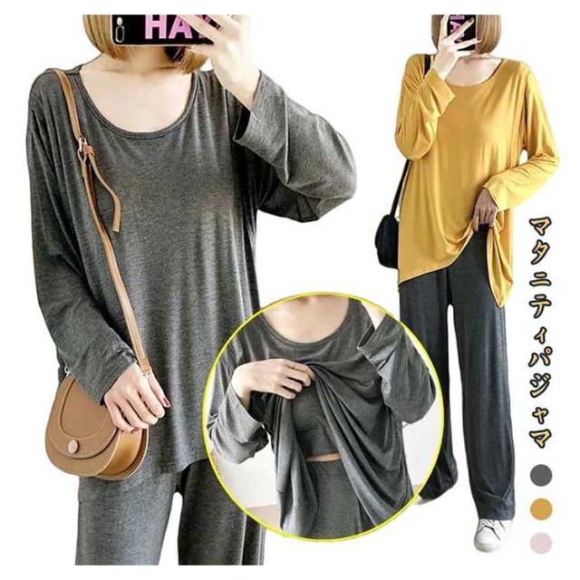 カップ付き マタニティパジャマ 授乳パジャマ 授乳口付き セットアップ 長袖 マタニティウェア ルームウェア 授乳服 妊婦服 入院 産前 産後 授乳期 春秋