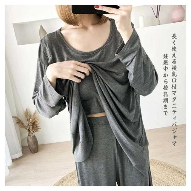 | カップ付きのおしゃれなマタニティルームウェア。 妊娠中から授乳期まで長く使える授乳口付マタニティパジャマ。 カップ付きでノーブラでも安心パジャマ、ちょっとのお出かけや急な来客時も安心です。 授乳口付きで産後も授乳服としても活用できます。 とても柔らかくて肌触り良いモダール素材の生地を採用して、ストレッチが効くから、動きやすくて、リラックスな着心地、ストレスフリーに着られる。 おしゃれなデザイン、部屋着、マタニティウェア、外出、お散歩、フィットネスウェアなど使いにオススメ。 | |