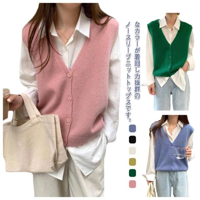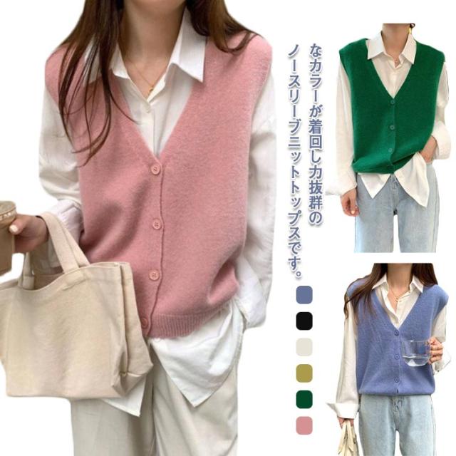 送料無料 ニットベスト レディース Vネック 前開き トップス ベスト ニット レイヤード ニットタンクトップ ニット タンクトップ 重ね着 秋冬 チョッキ セーター ノースリーブ シンプル 着回し力 体型カバー セーター 普段着 通勤 春 秋 冬